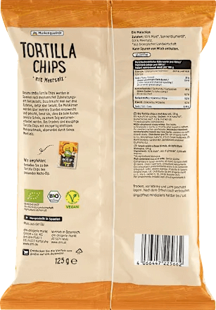 Chipsy tortilla z solą morską Bio są przygotowywane w Hiszpanii przy użyciu meksykańskiej metody. Do tego potrzeba tylko trzech składników, ale przy okazji dużo cierpliwości. Ziarna kukurydzy są moczone i gotowane przez kilka godzin, zanim zostaną przetworzone na ciasto bez łuski, która jest usuwana podczas gotowania. W rezultacie otrzymujemy chrupiące chipsy tortilla o wyjątkowo silnym kukurydzianym smaku, dopełnione delikatną solą morską. Spróbuj sam!