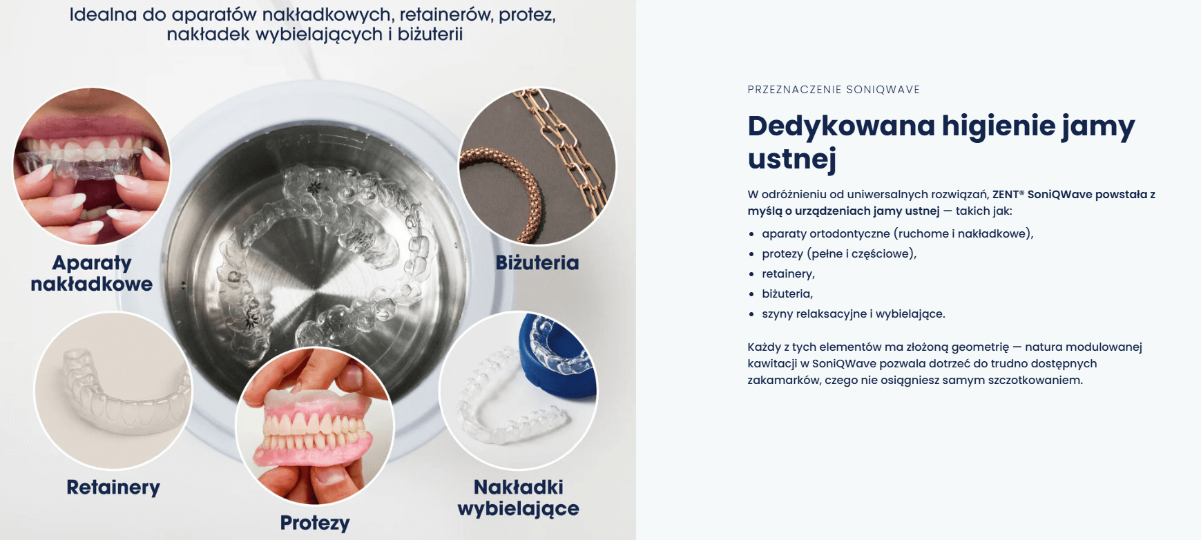Codzienna higiena aparatów ortodontycznych, nakładek czy protez to wyzwanie — zwykłe szczotkowanie nie usuwa osadów w mikroszczelinach.